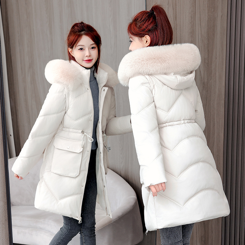 This women’s mid-length cotton-padded vest offers exceptional warmth and style. Designed with a large, plush fur collar integrated into the hood, it provides enhanced comfort and protection against cold weather. The cotton padding ensures insulation without bulk, while the mid-length design delivers additional coverage. Suitable for layering, the vest combines functionality with elegant aesthetics, making it an ideal choice for casual or outdoor wear during chilly seasons.