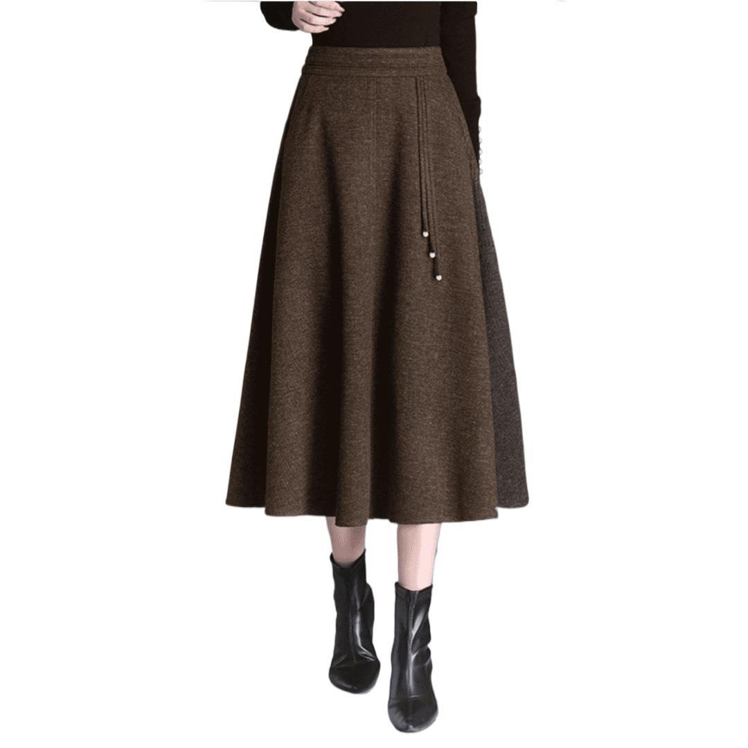 Elegant high-waisted women’s skirt perfect for autumn and winter, designed for casual wear below the knee with comfortable fit.