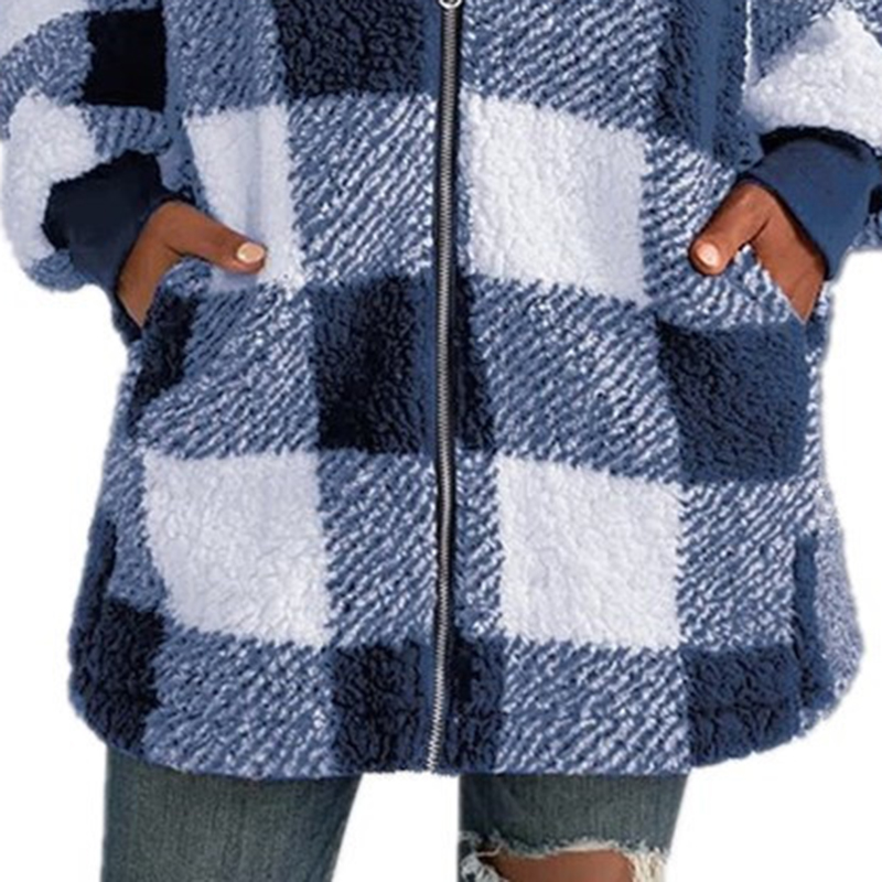This women’s oversized hooded jacket features a classic plaid pattern and long sleeves, designed with a full zip-up front for easy wear. Crafted to provide warmth and comfort, the coat includes practical pockets, making it suitable for winter casual outings and daily commutes. The relaxed, roomy fit enhances mobility while maintaining a fashionable silhouette. Ideal for layering during colder months, this jacket combines functionality with contemporary style.