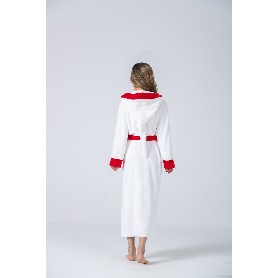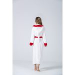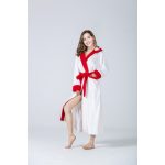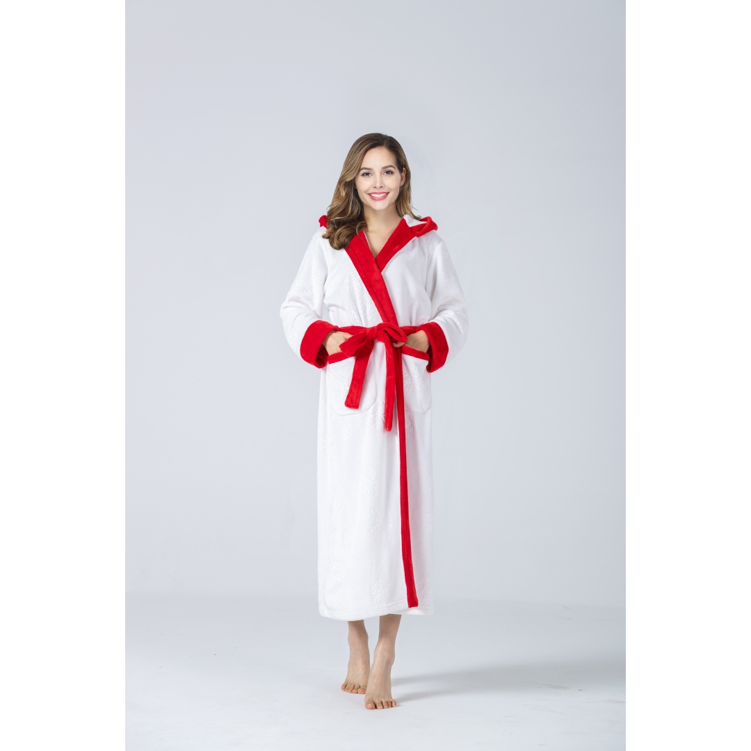 This women’s plush fleece hooded bathrobe offers exceptional warmth and comfort with its thick, soft material. Designed as a long nightgown-style robe, it features two convenient side pockets and a matching belt for adjustable fit. Ideal for relaxing at home or after bathing, the robe combines functionality with cozy style, making it a perfect addition to your sleepwear collection.