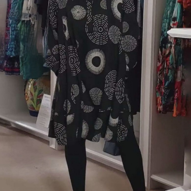 Stylish women’s dress featuring a printed gradient color and unique irregular pattern for a modern look.