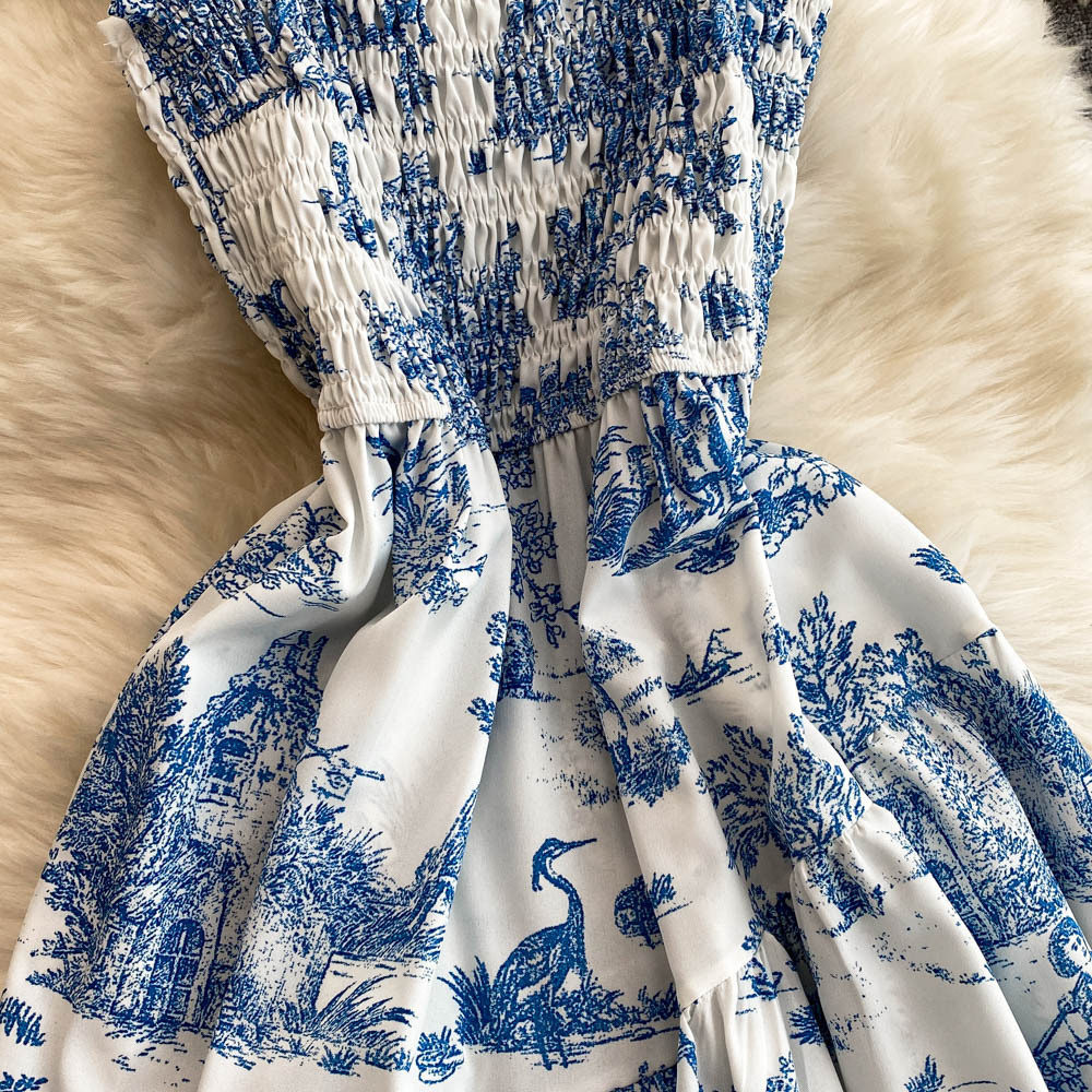 Elegant women’s retro chiffon slip dress featuring a printed design and backless style, perfect for sophisticated occasions.