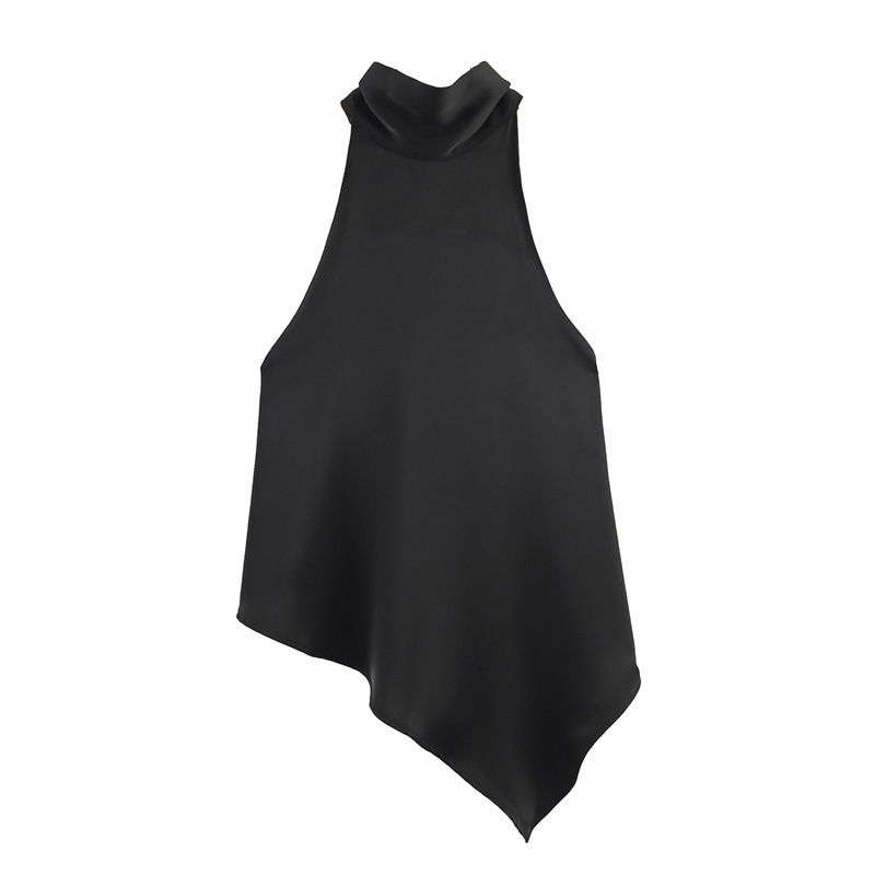 Elegant women’s satin halter neck strap top, featuring smooth fabric and a flattering neckline for sophisticated evening looks.