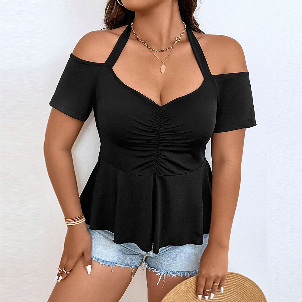 This women’s top features an off-shoulder design that highlights the neckline with a sophisticated, feminine appeal. Crafted to cinch at the waist, it enhances the silhouette for a flattering fit. The solid color provides versatility, easily pairing with various outfits for multiple occasions. The fabric ensures comfort while maintaining shape and style throughout wear. Suitable for both casual and dressy settings, this top combines elegance with modern fashion sensibilities.