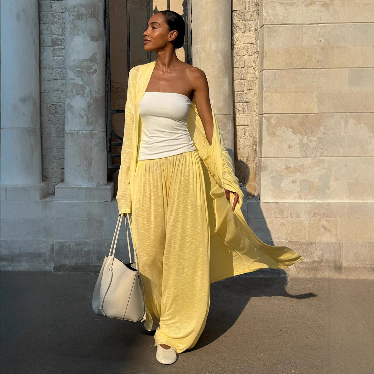 This women’s pajama set includes a shawl and harem pants, crafted from soft, breathable fabric offering exceptional comfort for lounging or sleeping. The relaxed fit pants feature a harem style with elastic waist for ease of movement, while the coordinating shawl provides lightweight coverage and a stylish layer. Ideal for casual indoor wear or laid-back outings, this set combines practical comfort with modern design. Available in versatile colors, it makes an excellent addition to any leisurewear wardrobe.