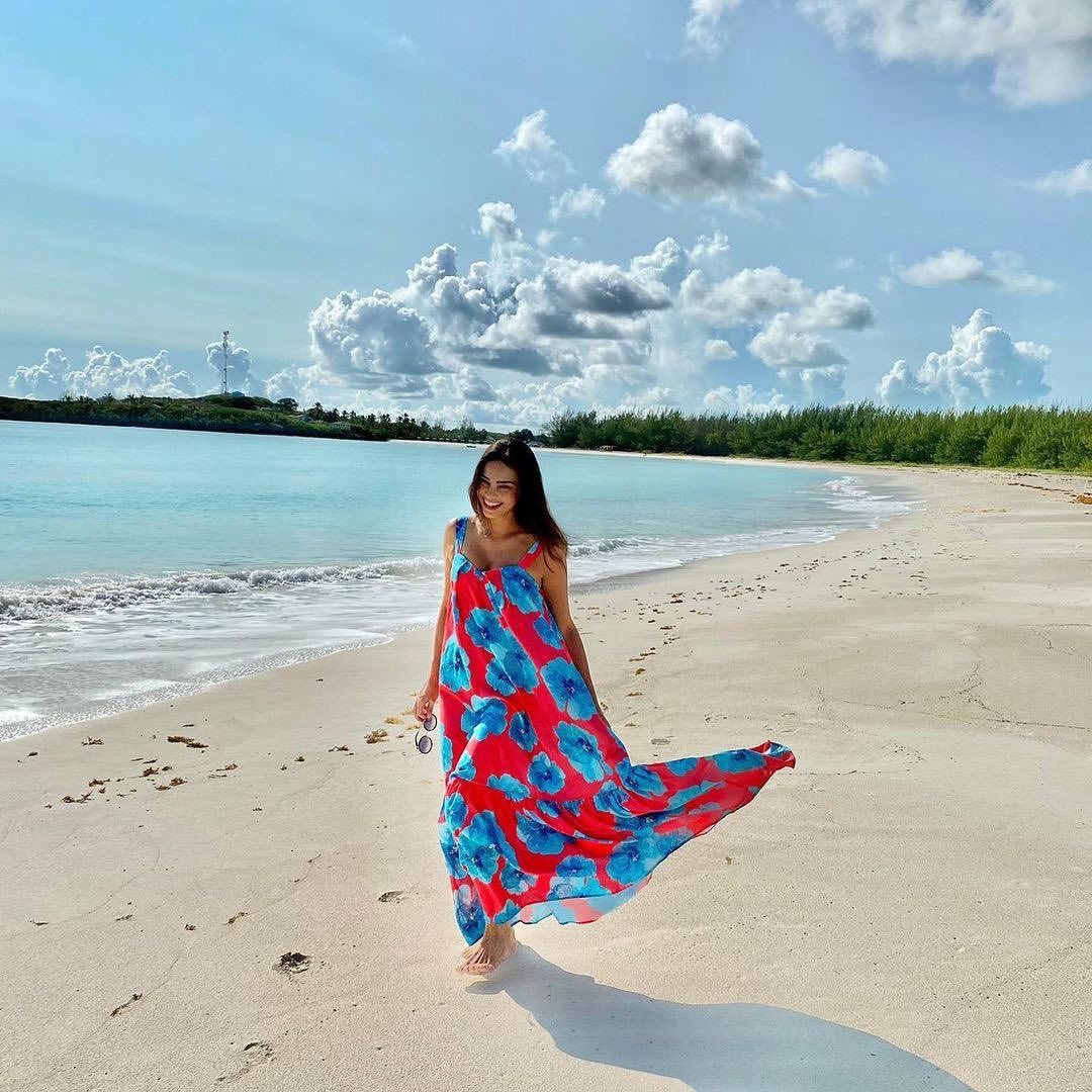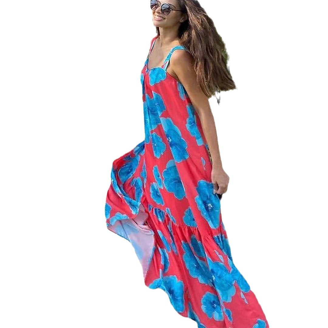 This women’s dress features a sleeveless design with delicate spaghetti straps, showcasing a vibrant floral print that enhances its feminine appeal. Crafted from lightweight, breathable fabric, it ensures comfort and style throughout the day. The flowing silhouette flatters various body types, making it suitable for both casual outings and more formal events. Ideal for warm weather, this dress combines elegance and ease in a versatile wardrobe staple.