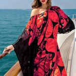 Elegant women’s boho dress featuring a loose fit, sloping shoulders, and vibrant prints for a stylish off-the-shoulder look.