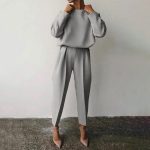 Be the first to review “Women’s Solid Color 2-Piece Set Round Neck Long Sleeve Top & Pleated Pants Loungewear For Spring & Fall” Cancel reply
