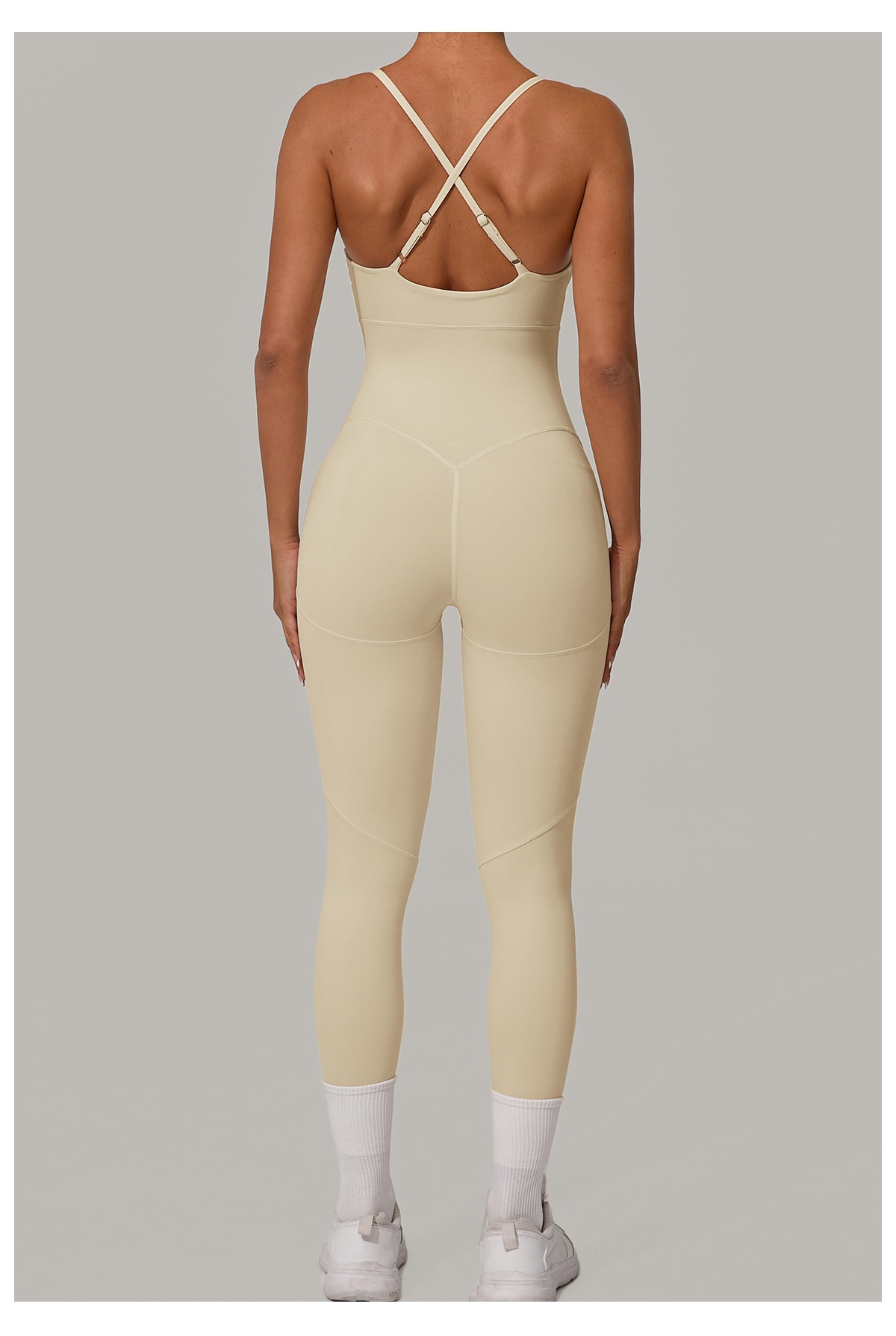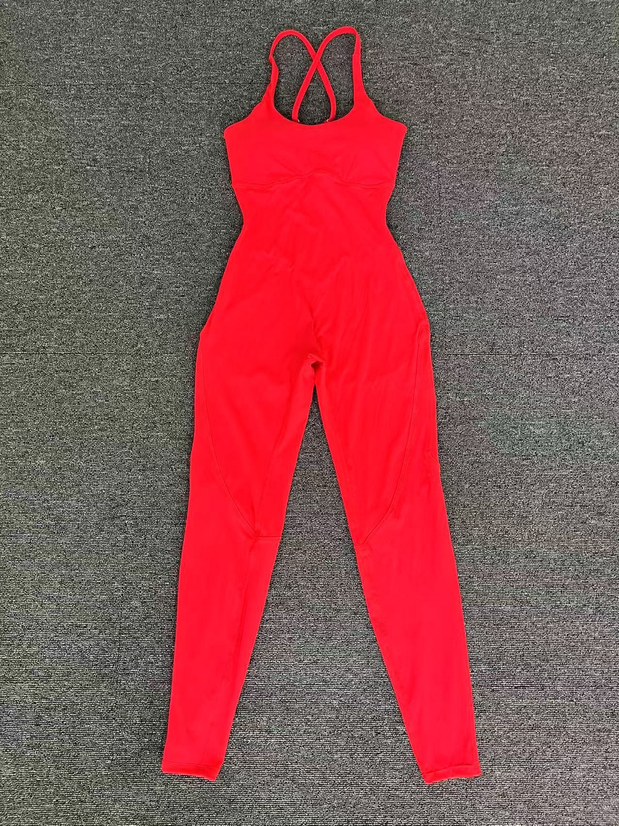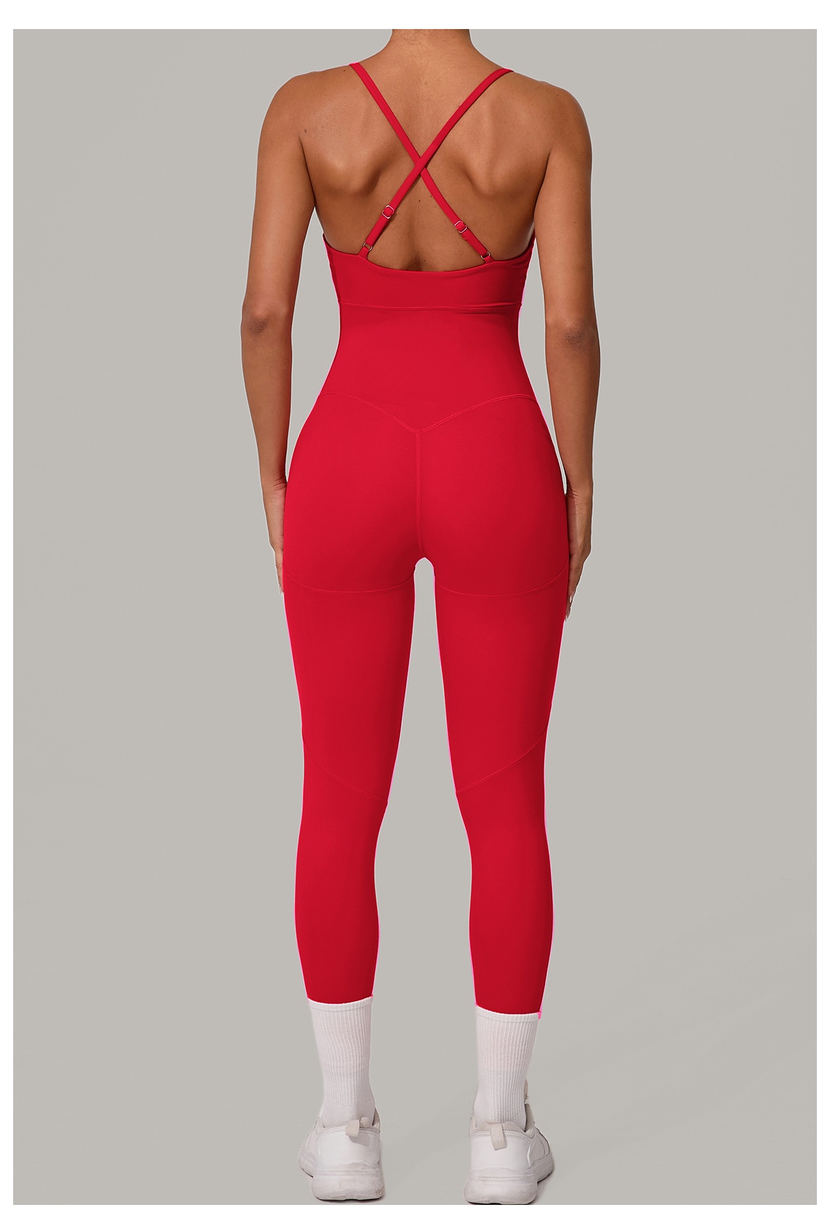 Lightweight women’s summer jumpsuit with cross back design and solid color for casual wear and comfort.