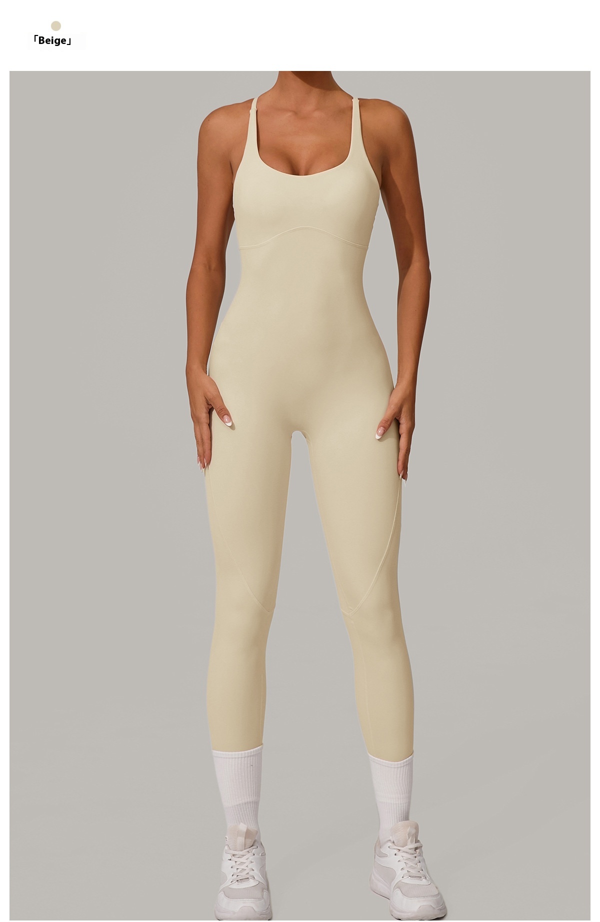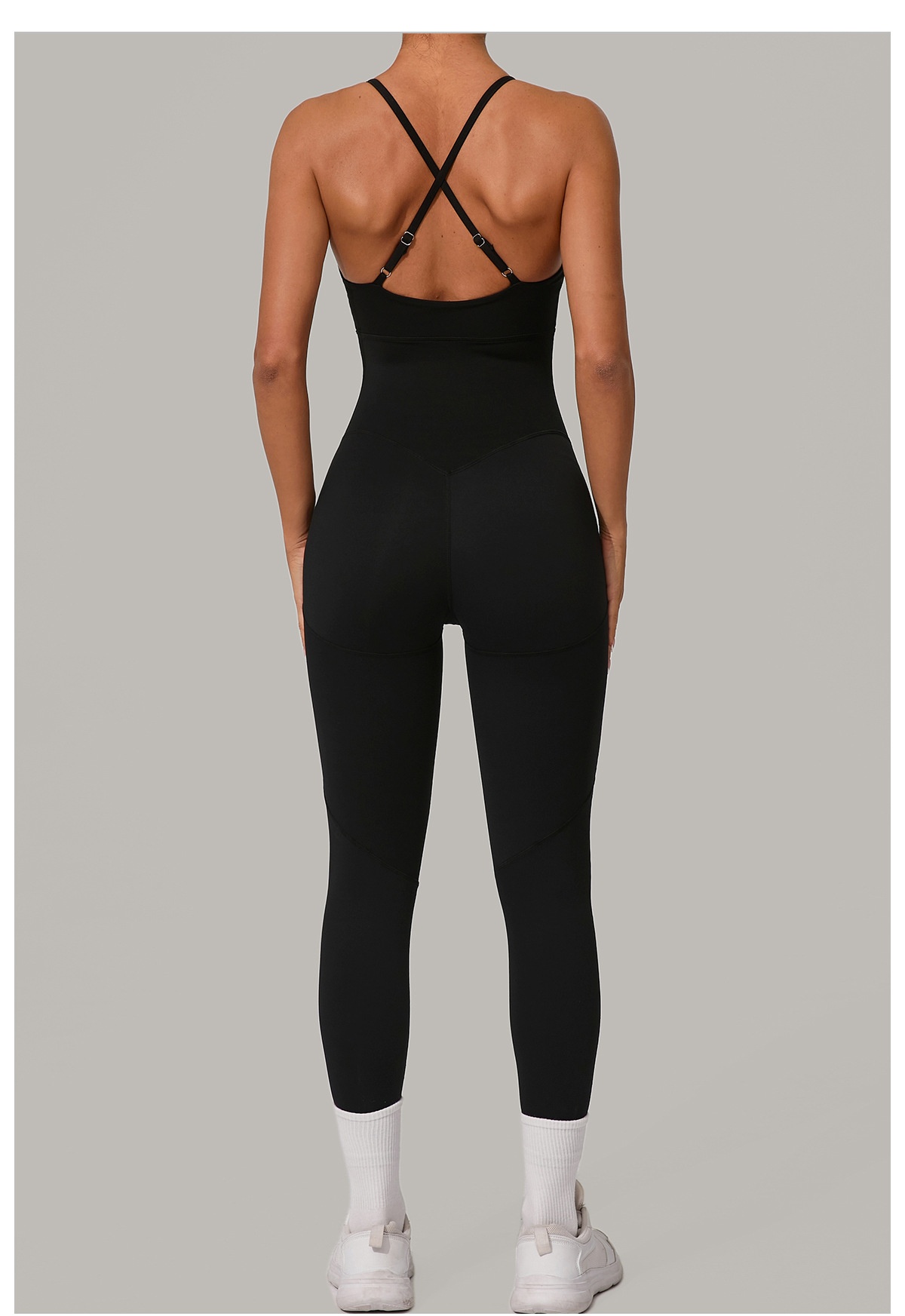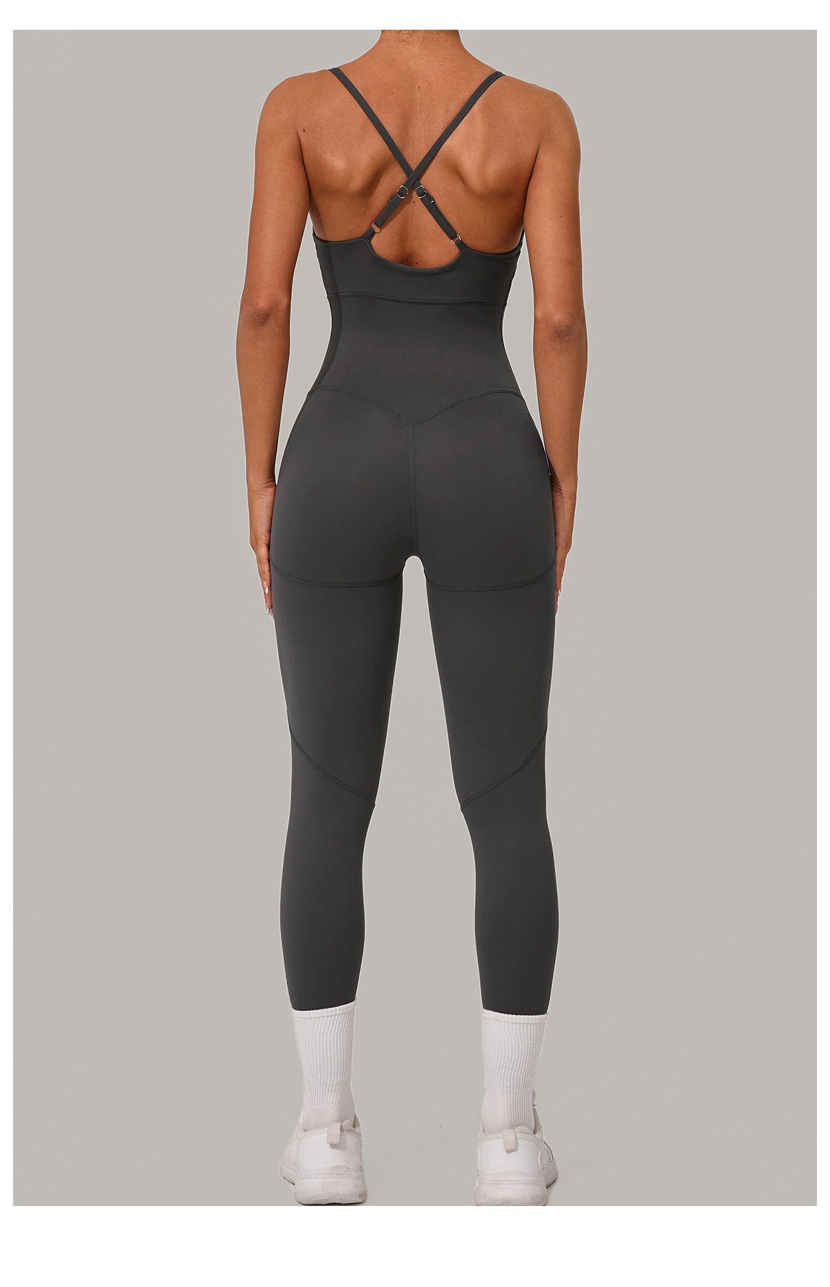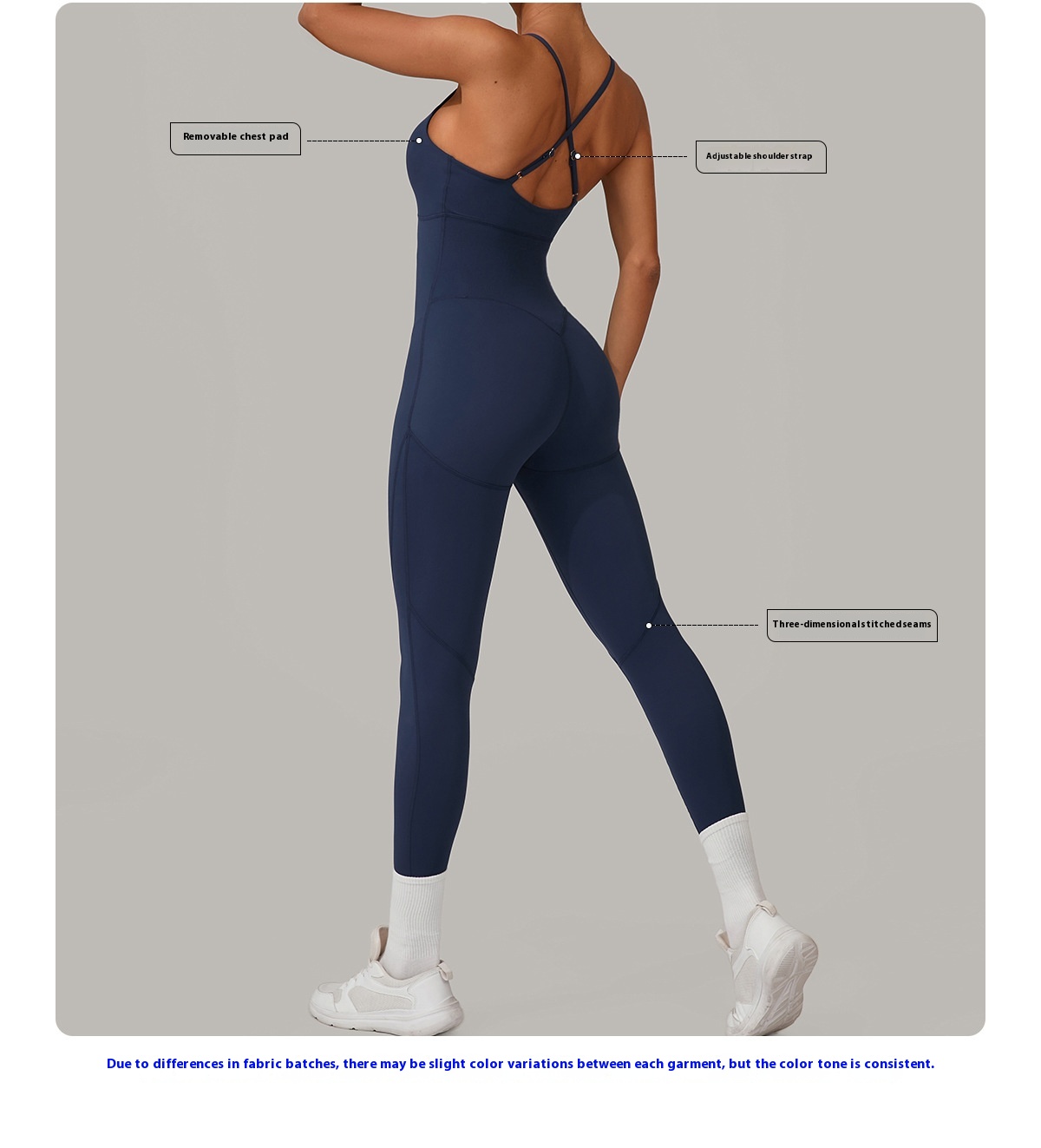 Lightweight women’s summer jumpsuit with cross back design and solid color for casual wear and comfort.