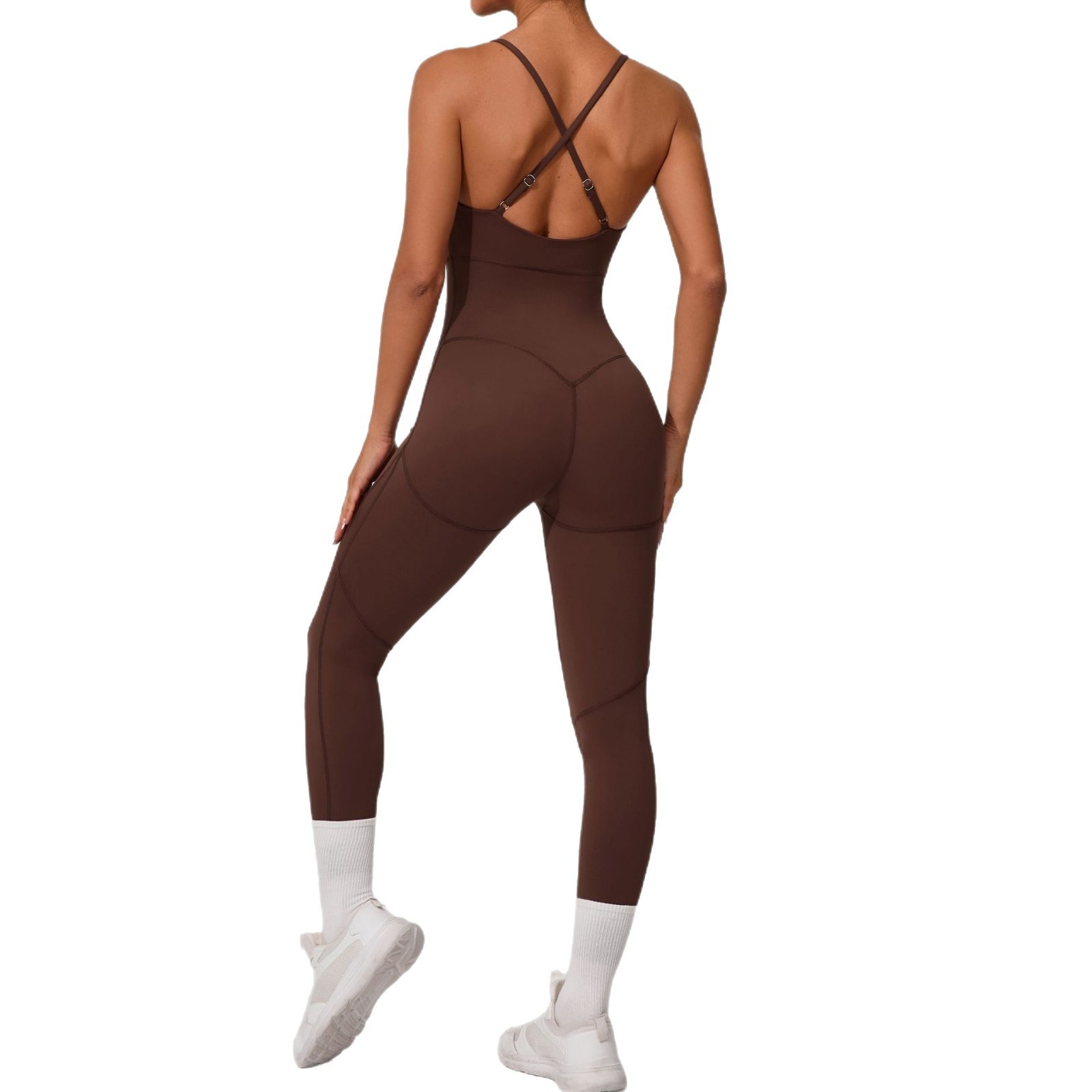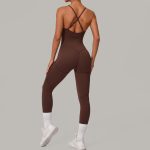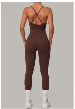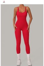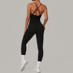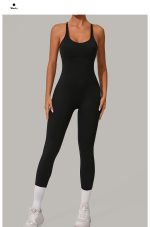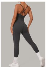 Lightweight women’s summer jumpsuit with cross back design and solid color for casual wear and comfort.