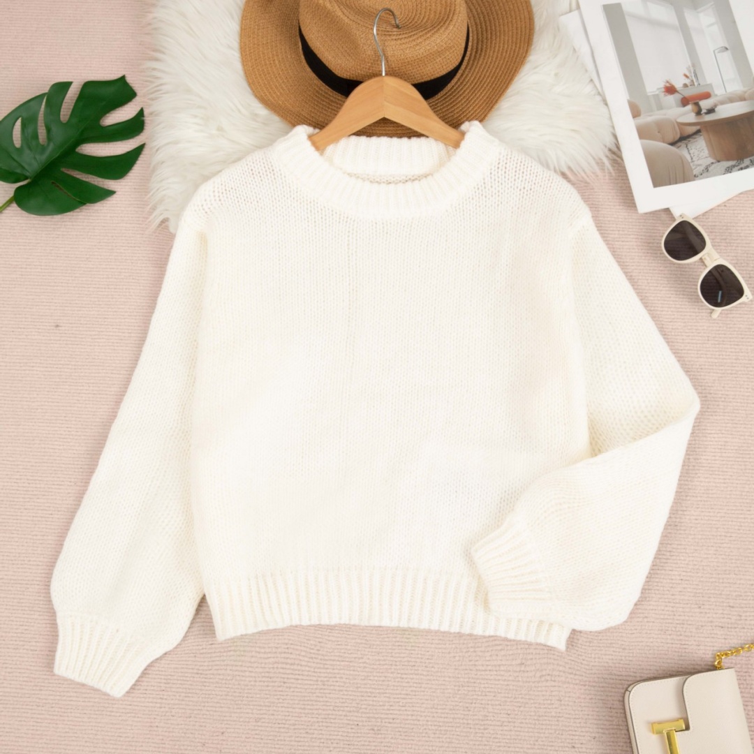 Comfortable and casual women’s solid color round neck loose knitted sweater, ideal for everyday wear.
