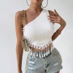 Be the first to review “Women’s Solid Color Single-shoulder Fringe Design Short Top” Cancel reply