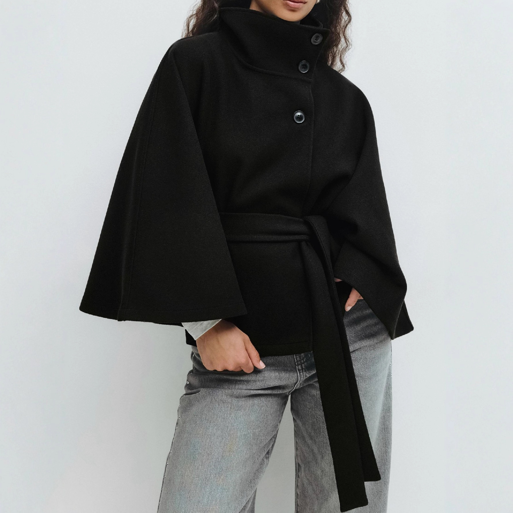This women’s trench coat features a solid color design complemented by a stand collar, providing a classic and stylish look. Crafted to ensure both comfort and warmth, it is suitable for transitional seasons and cooler days. The coat combines elegant simplicity with practical outerwear functionality, making it a versatile addition to any wardrobe.