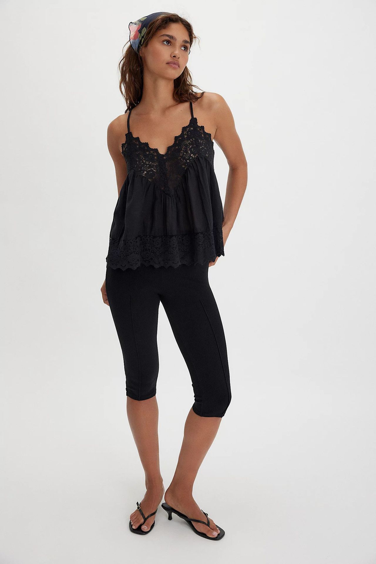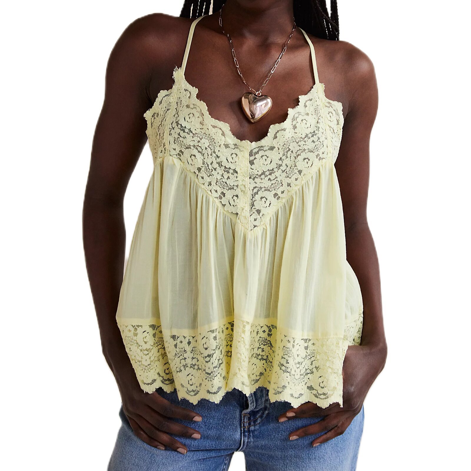 Elegant women’s solid color lace camisole vest offering versatile style and comfortable fit.