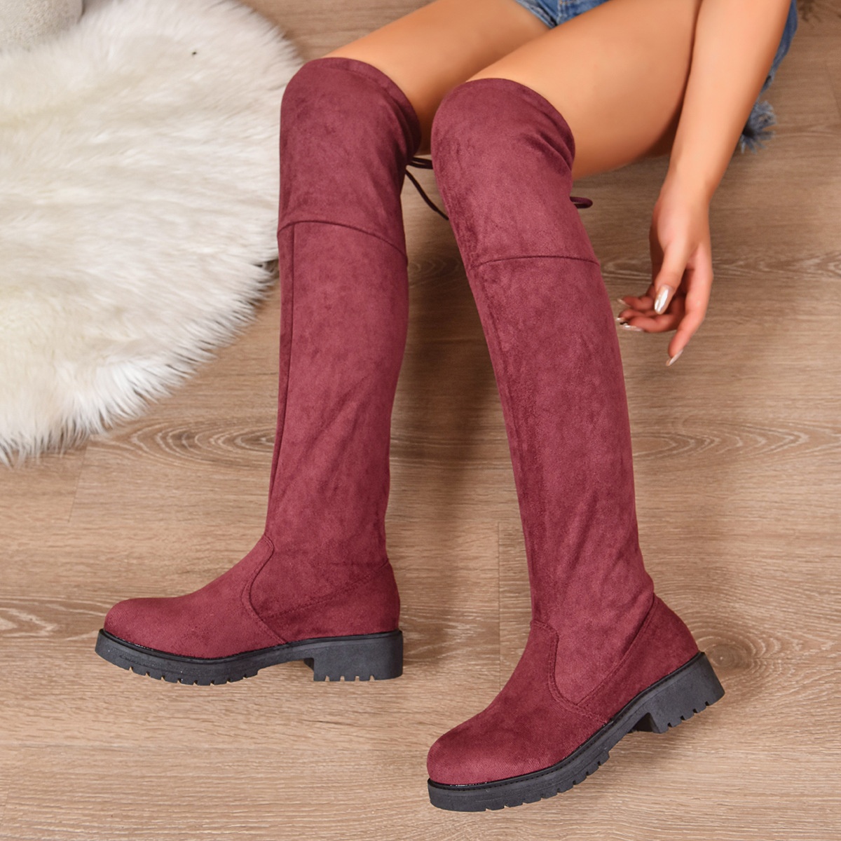 Elegant women’s knee high boots with solid color design and lace-up front for a stylish and comfortable fit.
