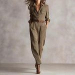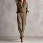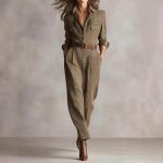 Elegant women’s plaid jumpsuit designed for spring and autumn seasons, combining comfort with stylish appeal.