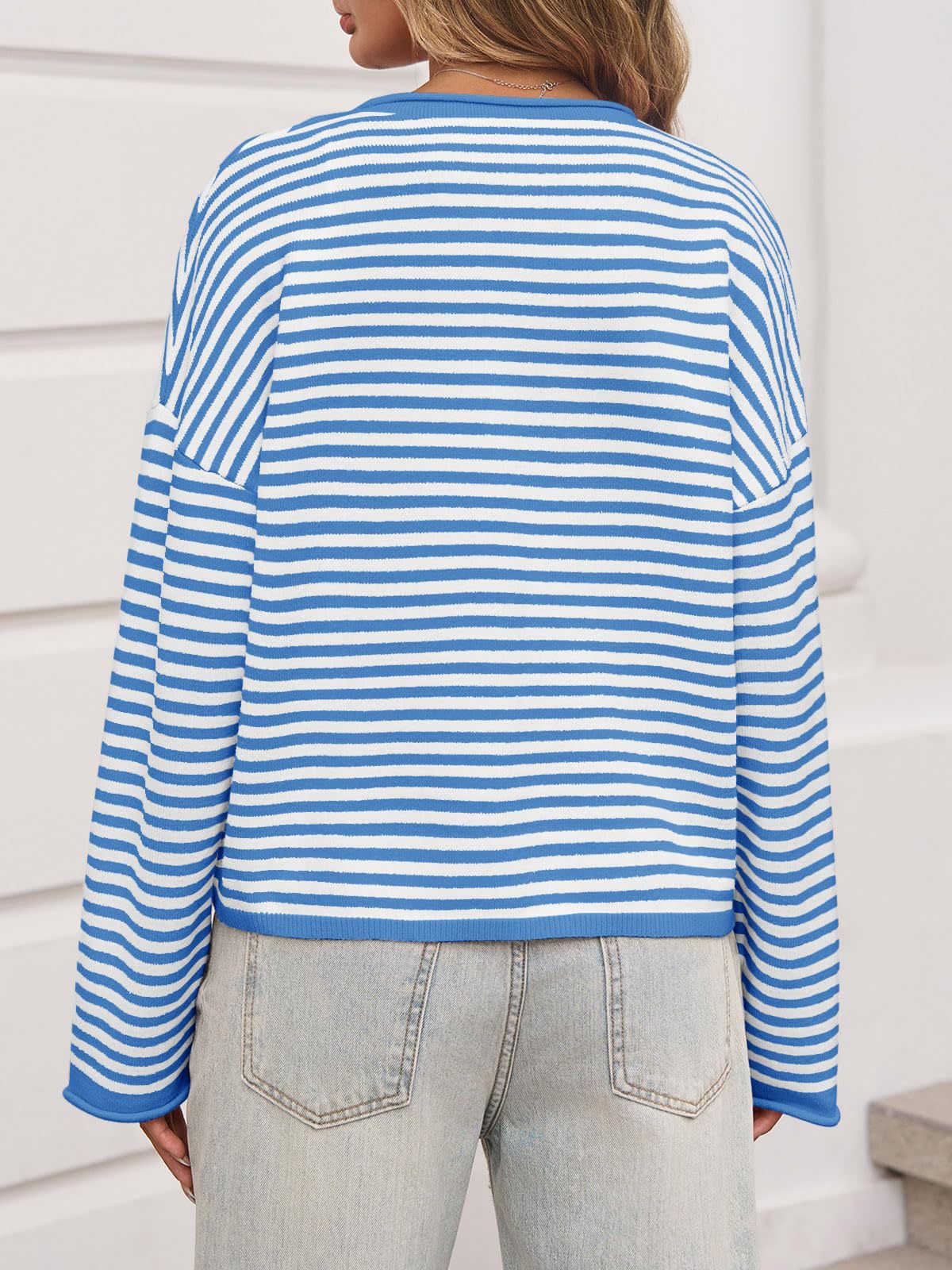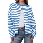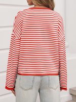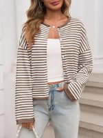 Stylish women’s striped cardigan sweater with contrast colors and long sleeves, perfect for casual wear and comfortable layering.