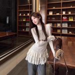 This women’s long-sleeve top is crafted from soft brushed fleece fabric, providing warmth and comfort during autumn and winter. Designed with a sleek inner sleeve and an elegant, chic hem, it offers both style and practicality. The brushed fleece material ensures a cozy feel, making it suitable for layering or wearing alone. Its refined design and quality fabric make it an essential addition to a cold-weather wardrobe.