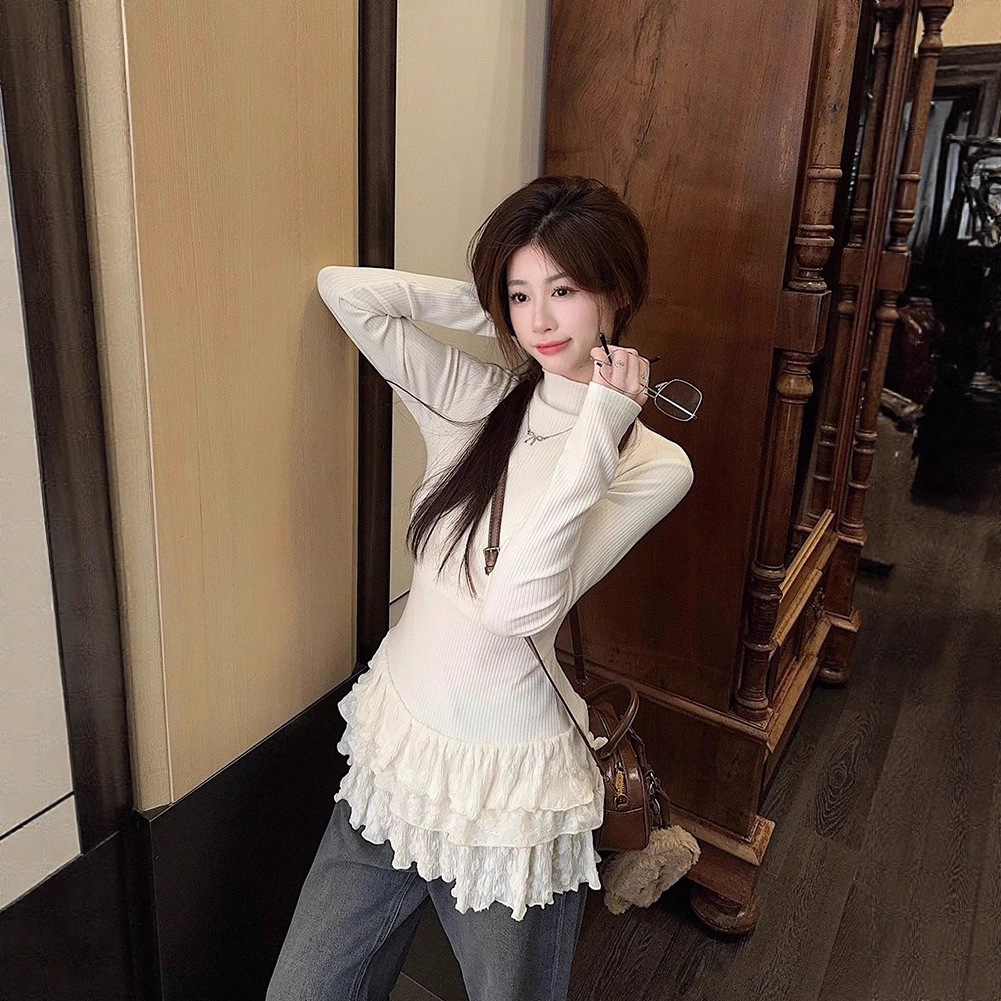 Women’s Top Autumn And Winter New Brushed Fleece Long Inner Sleeve With Chic Hem