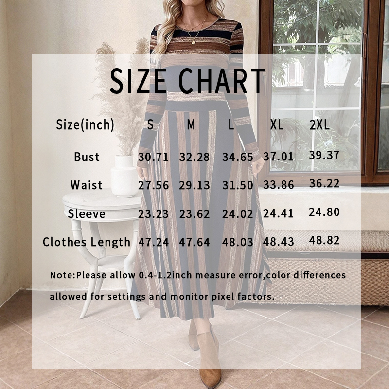 This women’s vintage maxi dress showcases a timeless design with long sleeves and a crewneck neckline. Crafted to provide a flattering slim fit, the dress features an empire waist that accentuates the figure elegantly. Its full-length silhouette delivers a graceful flow, making it ideal for casual fall occasions with a chic boho aesthetic. The dress combines comfort and style, suitable for various settings where relaxed yet sophisticated attire is desired.