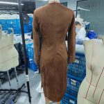 Elegant women’s vintage western suede-look maxi dress featuring boho fringe and waist ruffle details for a stylish bodycon silhouette.