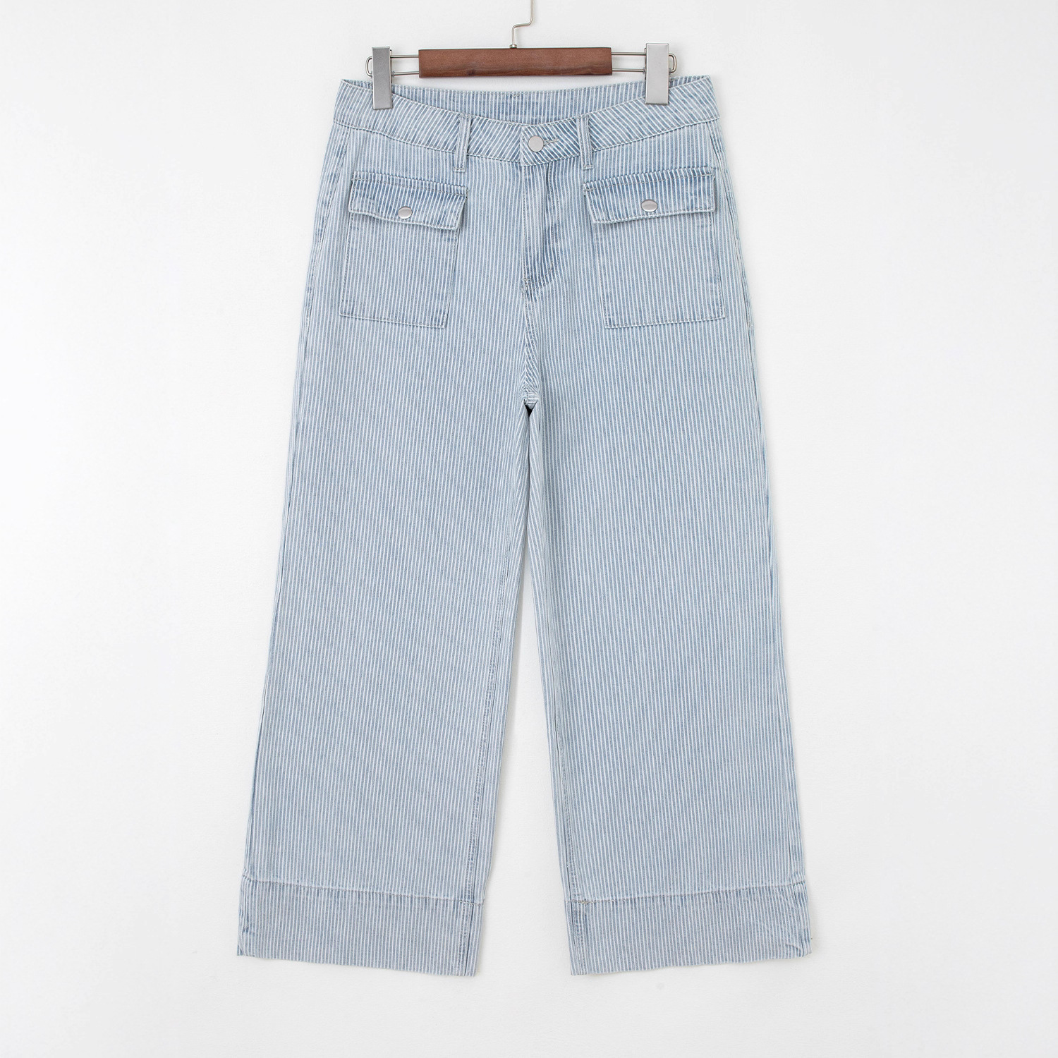 These women’s wide-leg pants feature a high-waisted design combined with a loose and relaxed fit for maximum comfort throughout the day. Crafted from lightweight, breathable fabric, they display a sophisticated striped pattern that adds a stylish touch to casual outfits. Ideal for various occasions, these pants offer ease of movement and a flattering silhouette, making them a versatile addition to any wardrobe.