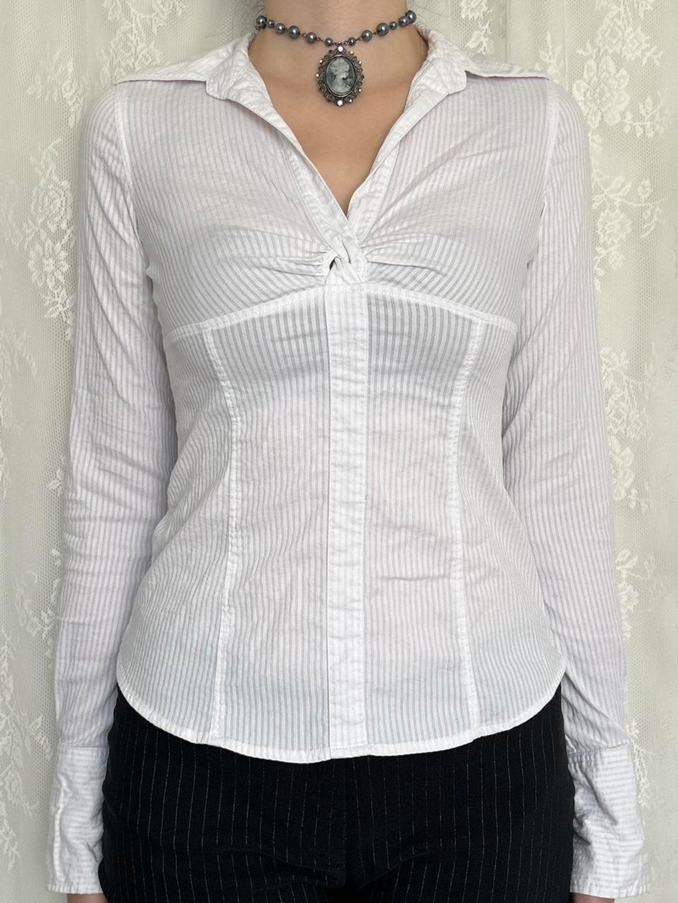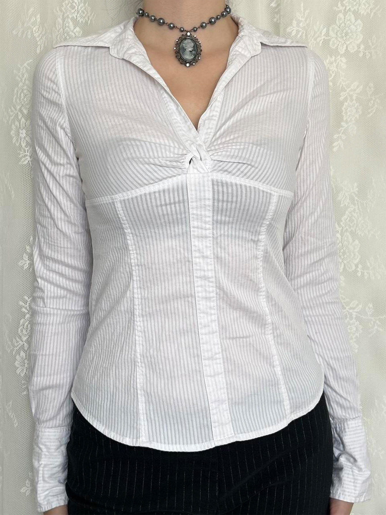 Stylish Y2K-inspired solid-color long-sleeve mini shirt with a modern edgy design, perfect for contemporary women’s fashion.