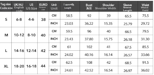 1. Asian sizes are 1 to 2 sizes smaller than European and American people. Choose the larger size if your size between two sizes. Please allow 2-3cm differences due to manual measurement. 2. Please check the size chart carefully before you buy the item, if you don’t know how to choose size, please contact our customer service. 3.As you know, the different computers display colors differently, the color of the actual item may vary slightly from the following images.