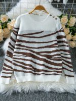 Be the first to review “Zebra Print Round Neck Shoulder Button Long Sleeve Sweater” Cancel reply