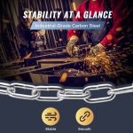 This zinc plated proof coil chain is constructed from high-quality carbon steel, measuring 3/16 inches in diameter and 10 feet in length. Designed for lifting and rigging, the chain sling offers a working load limit of 1100 pounds. The zinc plating provides enhanced corrosion resistance, extending the product’s service life. Its robust design ensures reliable performance in various industrial and construction applications. Ideal for securing loads safely, this chain combines strength, durability, and resistance to wear.