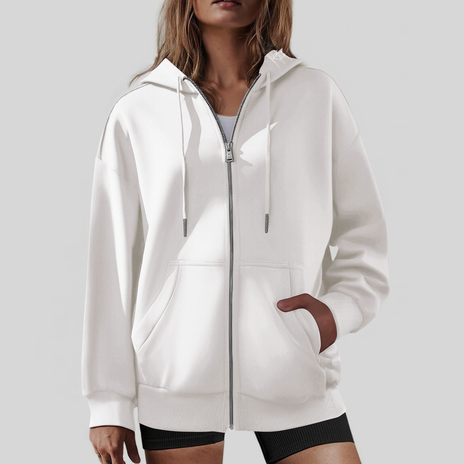 Lightweight zip-up hoodie for women, perfect for casual wear and sports activities. Comfortable and stylish sweatshirt.