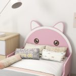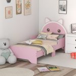 Product Name:ZONEKIZ Bed for Kids Cat Design Toddler Bed Frame Bedroom Furniture with Guardrails, for 3-6 Years, 143L x 74W x 72Hcm – Pink